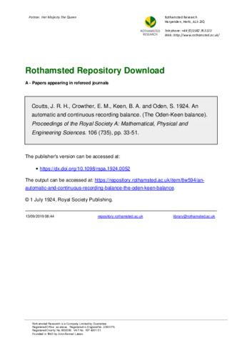 An automatic and continuous recording balance. (The Oden-Keen balance).