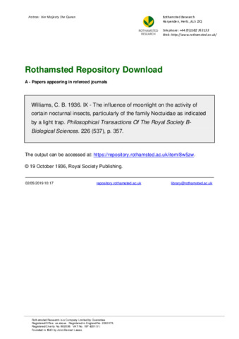 For many years amateur entomologists have considered that on nights of full moon it is of little use going out to catch specimens, as insects will be few in number. This belief applies to all methods of collecting, including bait (sugaring) and light, and is supposed to apply particularly to the Lepidoptera. Scattered through the literature on Agricultural Entomology one finds occasionally references to the use of light traps for the destruction of pests, and statements, usually from the tropics, that the catches were less at times of full moon ; but so far as I am aware no proper statistical study of the question has ever been made. One of the most striking series of figures is that produced by Pagden (1932) by trapping with a light trap the two Pyralid moths Diatraea auricilia and Schoenobius incertellus which are pests of rice in Malaya. He found, between 18 January and 29 June, 1931, six periods of maximum catch in both sexes of both species corresponding more or less to the no moon periods, and six periods of minimum catch corresponding even more definitely to the full moons. Scarcely any insects were captured at the time of full moon.