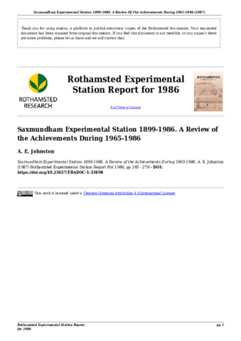 Saxmundham Experimental Station 1899-1986 A review of the achievements during 1965-1986