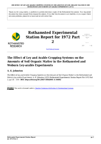 The effects of ley and arable cropping systems on the amounts of soil organic matter in the Rothamsted and Woburn ley-arable experiment.