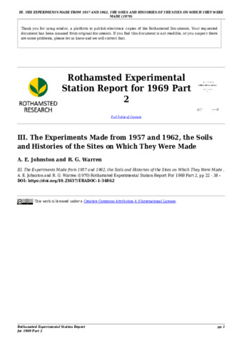 The value of residues from long-period manuring at Rothamsted and Woburn III The experiments made from 1957 to 1962, the soils and histories of the sites on which they were made