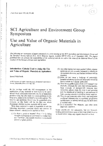SCI Agriculture and Environment Group symposium: use and value of organic materials in agriculture.