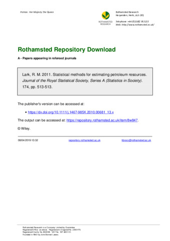 Statistical methods for estimating petroleum resources.