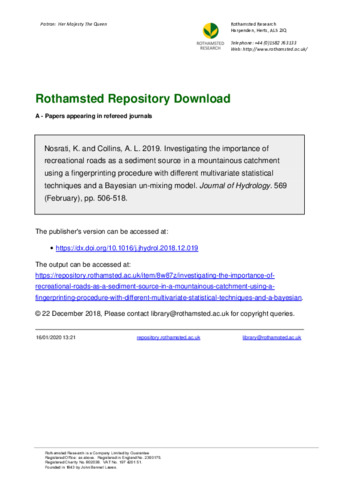 Investigating the importance of recreational roads as a sediment source in a mountainous catchment using a fingerprinting procedure with different multivariate statistical techniques and a Bayesian un-mixing model