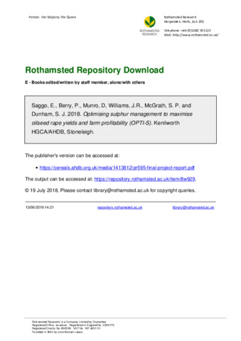Optimising sulphur management to maximise oilseed rape yields and farm profitability (OPTI-S): Project Report No. 595