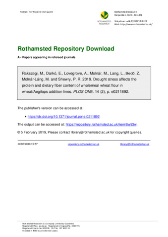 Drought stress affects the protein and dietary fiber content of wholemeal wheat flour in wheat/Aegilops addition lines