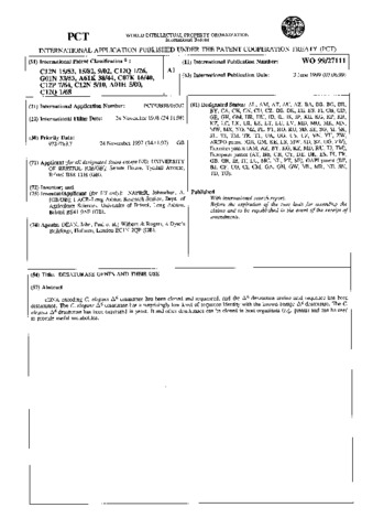 Desaturase Genes And Their Use (Patent WO 1999/027111 A1)