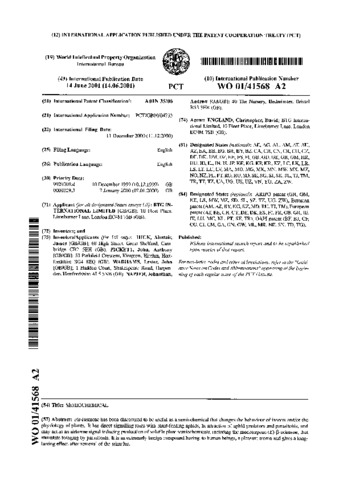 | Additional information | Document History Publication: Jun 14, 2001 WO 2001/041568 A2 Application: Dec 11, 2000 WO GB 0004733 W Priority: Jan 7, 2000 GB 0000329 A Priority: Dec 10, 1999 GB 9929309 A |