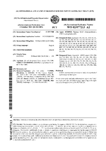 | Additional information | Document History Publication: Oct 3, 2002 WO 2002/077213 A2 Application: Mar 26, 2002 WO EP 0203418 W Priority: Mar 26, 2001 GB 0107510 A |