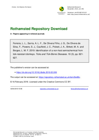 | Keywords | Amblyomma cajennense sensu lato , Donkey, Non-host, (E)-2-octenal, Repellent, Allomone |