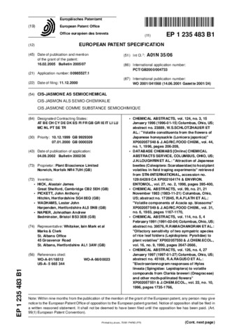 Cis-jasmone As Semiochemical (Patent EP 1235483 B1)
