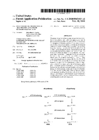 Process For The Production Of Arachidonic Acid And/or Eicosapentaenoic Acid (Patent US 2010/0043103 A1)