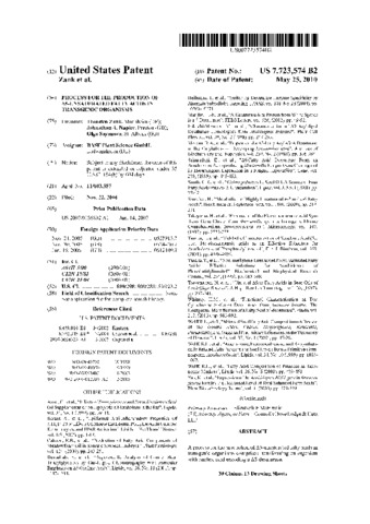 | Additional information | Owner Basf Plant Science Gmbh Nov 21 2006 Document History Publication: May 25, 2010 US 7723574 B2 Application: Nov 22, 2006 US 60355706 A Priority: Jun 19, 2006 GB 0612109 A Priority: Nov 30, 2005 GB 0524420 A Priority: Nov 24, 2005 GB 0523915 A |