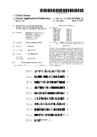 | Additional information | Owner Rothamsted Research Ltd (Feb 08 2011) Document History Publication: Jun 9, 2011 US 2011/0138490 A1 Application: Apr 29, 2009 US 99049209 A Priority: Apr 29, 2009 EP 2009055210 W Priority: Apr 30, 2008 EP 08155461 A |