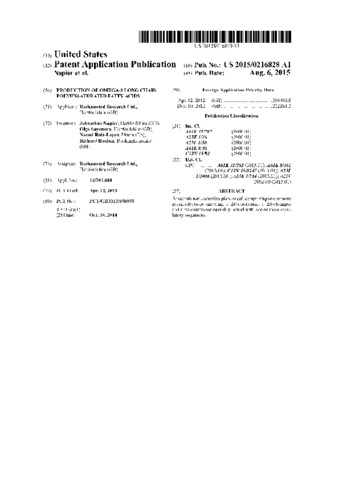 Production Of Omega-3 Long Chain Polyunsaturated Fatty Acids (Patent US 2015/0216828 A1).