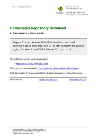 Kriging is a means of spatial prediction that can be used for soil properties. It is a form of weighted local averaging. It is optimal in the sense that it provides estimates of values at unrecorded places without bias and with minimum and known variance. Isarithmic maps made by kriging are alternatives to conventional soil maps where properties can be measured at close spacings. Kriging depends on first computing an accurate semi‐variogram, which measures the nature of spatial dependence for the property. Estimates of semi‐variance are then used to determine the weights applied to the data when computing the averages, and are presented in the kriging equations. The method is applied to three sets of data from detailed soil surveys in Central Wales and Norfolk. Sodium content at Plas Gogerddan was shown to vary isotropically with a linear semi‐variogram. Ordinary punctual kriging produced a map with intricate isarithms and fairly large estimation variance, attributed to a large nugget effect. Stoniness on the same land varied anisotropically with a linear semi‐variogram, and again the estimation error of punctual kriging was fairly large. At Hole Farm, Norfolk, the thickness of cover loam varied isotropically, but with a spherical semi‐variogram. Its parameters were estimated and used to krige point values and produce a map showing substantial short‐range variation.