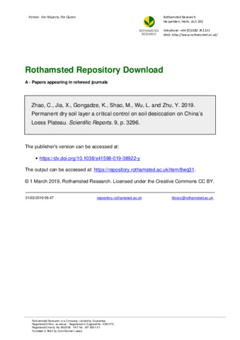 Permanent dry soil layer a critical control on soil desiccation on China’s Loess Plateau