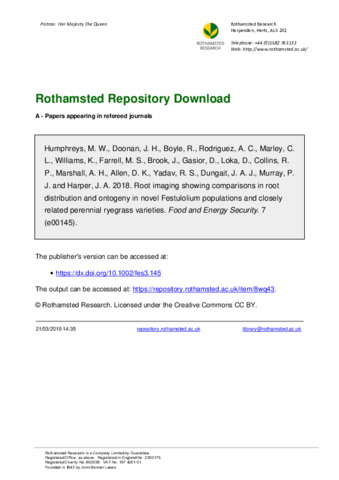 Root imaging showing comparisons in root distribution and ontogeny in novel Festulolium populations and closely related perennial ryegrass varieties