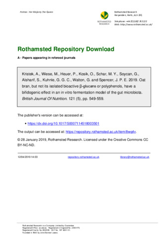 | Keywords | Oats, Polyphenols, β-Glucan, Gut microbiota, 16S rRNA gene sequencing, SCFA, Bifidogenic effects |