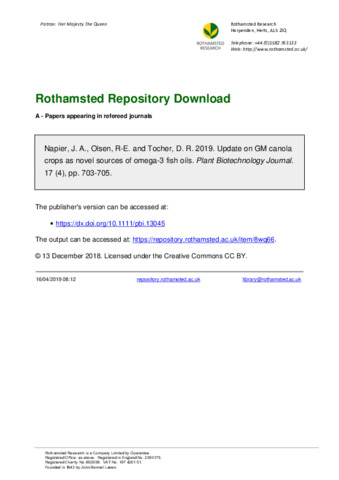 Update on GM canola crops as novel sources of omega-3 fish oils.