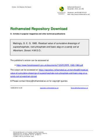 Residual value of cumulative dressings of superphosphate, rock phosphate and basic slag on a sandy soil at Wareham, Dorset.
