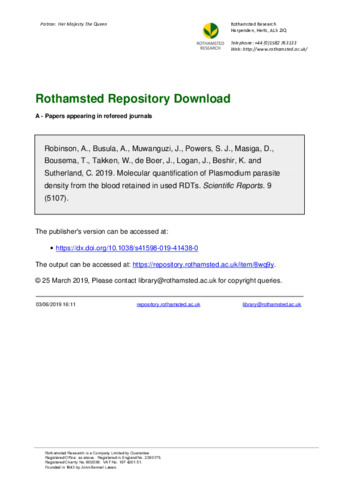 Molecular quantification of Plasmodium parasite density from the blood retained in used RDTs