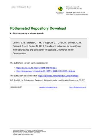 | Keywords | Abundance , Citizen science, Lepidoptera, Multi-species indicators, National Moth Recording Scheme, Occupancy |
