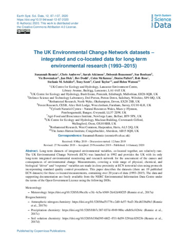 The UK Environmental Change Network datasets - integrated and co-located data for long-term environmental research (1993-2015)