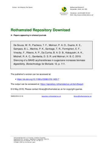 Silencing of a BAHD acyltransferase in sugarcane increases biomass digestibility