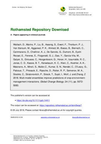 | Keywords | Climate change impact, Crop models, Ensemble mean, Ensemble median, Multimodel ensemble, Prediction |