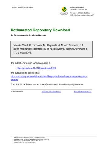 | Keywords | Insect swarms, Flight behaviours, Modelling, Analysis |