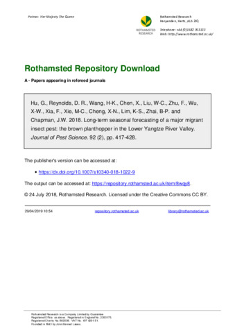 Rice planthoppers and associated virus diseases have become the most important pests threatening food security in China and other Asian countries, incurring costs of hundreds of millions of US dollars annually in rice losses, and in expensive, environmentally harmful, and often futile control efforts. The most economically damaging species, the brown planthopper, Nilaparvata lugens (Hemiptera: Delphacidae), cannot overwinter in temperate East Asia, and infestations there are initiated by several waves of windborne spring or summer migrants originating from tropical areas in Indochina. The interaction of these waves of migrants and synoptic weather patterns, driven by the semi-permanent western Pacific subtropical high-pressure (WPSH) system, is of critical importance in forecasting the timing and intensity of immigration events and determining the seriousness of subsequent planthopper build-up in the rice crop. We analysed a 26-year data set from a standardised light trap network in Southern China, showing that planthopper aerial transport and concentration processes are associated with the characteristics (strength and position) of the WPSH in the year concerned. Then, using N. lugens abundance in source areas and indices of WPSH intensity or related sea surface temperature anomalies, we developed a model to predict plan-thopper numbers immigrating into the key rice-growing area of the Lower Yangtze Valley. We also demonstrate that these WPSH-related climatic indices combined with early-season planthopper catches can be used to forecast, several months in advance, the severity of that season’s N. lugens infestations (the correlation between model predictions and outcomes was 0.59), thus allowing time for effective control measures to be implemented.