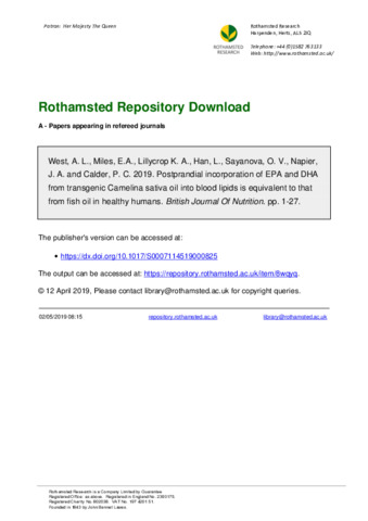 | Keywords | Transgenic plant, Camelina sativa, Docosahexaenoic acid, Eicosapentaenoic acid, Postprandial |
