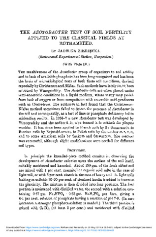 The Azotobacter Test of Soil Fertility Applied to the Classical Fields at Rothamsted