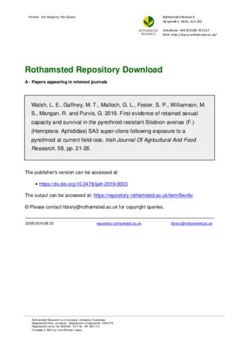 First evidence of retained sexual capacity and survival in the pyrethroid resistant Sitobion avenae (F.) (Hemiptera: Aphididae) SA3 super-clone following exposure to a pyrethroid at current field-rate.