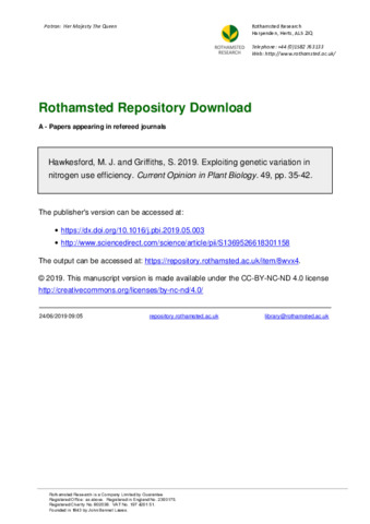 Exploiting genetic variation in nitrogen use efficiency