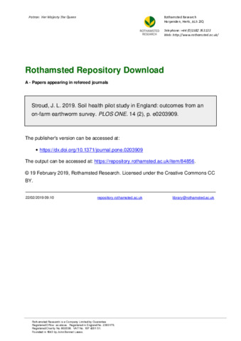 Soil health pilot study in England: outcomes from an on-farm earthworm survey