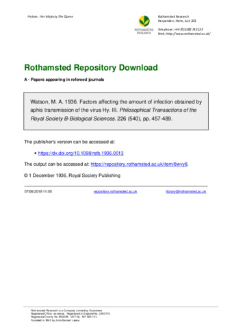 Factors affecting the amount of infection obtained by aphis transmission of the virus Hy. III