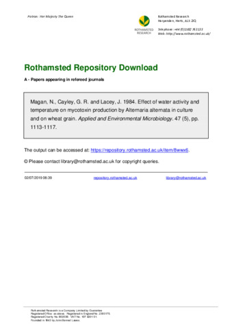 | Additional information | Times Cited: 66 Magan, n cayley, gr lacey, j Magan, Naresh/0000-0002-5002-3564 69 Amer soc microbiology Washington MAGAN, N (reprint author), ROTHAMSTED EXPTL STN,HARPENDEN AL5 2JQ,HERTS,ENGLAND. |