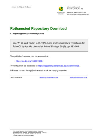 Light and Temperature Thresholds for Take-Off by Aphids.