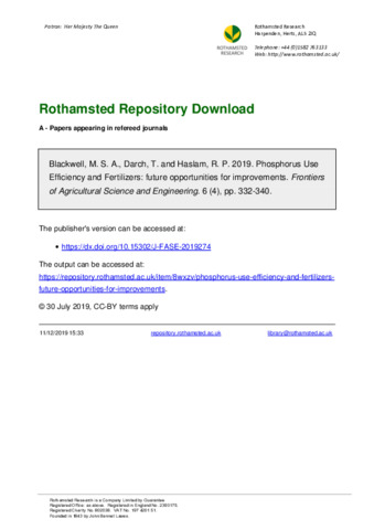 Phosphorus Use Efficiency and Fertilizers: future opportunities for improvements