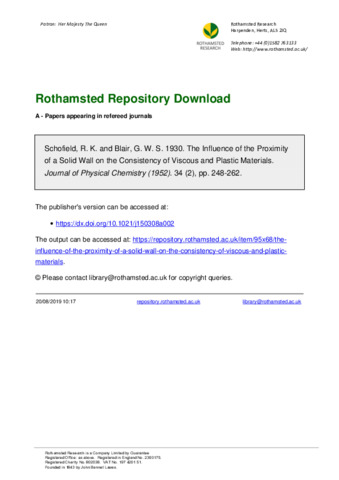 The Influence of the Proximity of a Solid Wall on the Consistency of Viscous and Plastic Materials.