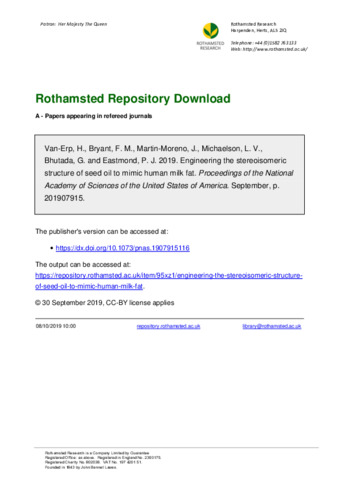 | Keywords | Metabolic engineering, Oilseeds, Structured triacylglycerols, Human milk fat |