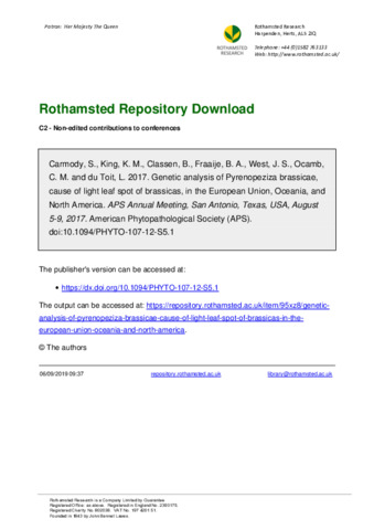 Genetic analysis of Pyrenopeziza brassicae, cause of light leaf spot of brassicas, in the European Union, Oceania, and North America