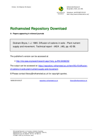 Diffusion of cations in soils - Plant nutrient supply and movement