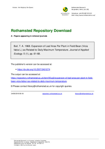 Expansion of Leaf Area Per Plant in Field Bean (Vicia fabia L.) as Related to Daily Maximum Temperature.