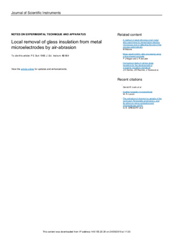 Local removal of glass insulation from metal microelectrodes by air-abrasion.