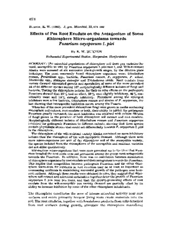 Effects of Pea Root Exudate on the Antagonism of Some Rhizosphere Micro-organisms towards Fusarium oxysporum f. pisi.