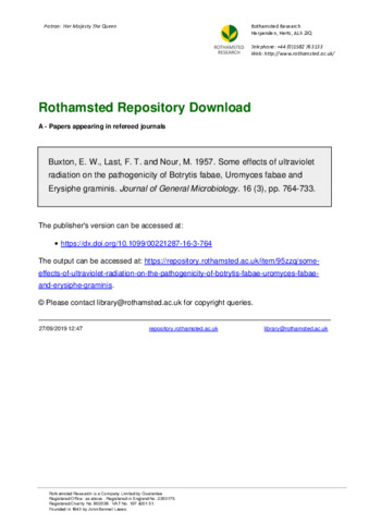 Some effects of ultraviolet radiation on the pathogenicity of Botrytis fabae, Uromyces fabae and Erysiphe graminis.