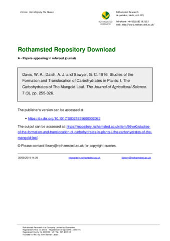 Studies of the Formation and Translocation of Carbohydrates in Plants: I. The Carbohydrates of The Mangold Leaf.